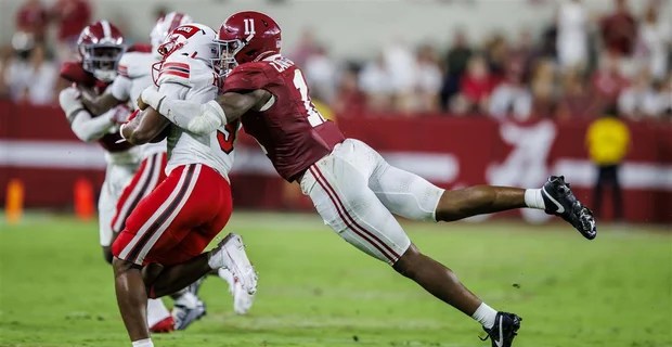 It would not shock me at all if Jihaad Campbell went before this. Frankly the Buccaneers feel like his floor. Tampa Bay needs help all across the defense, and Campbell can help in a variety of ways. An elite athlete at the LB position, Campbell was originally recruited to be an EDGE out of high school. In a crowded EDGE room with high NFL picks such as Will Anderson Jr., Dallas Turner, and Chris Braswell, the Crimson Tide staff saw the easiest route to get Campbell on the field early at Linebacker. Unlike most players, he made the transition look easy and flourished in his new role. Campbell uses his background at EDGE to be a lethal blitzer. Alabama would sometimes align him as a true DE but typically send him on blitzes from a variety of different spots. His pressure rate was among the highest at any position. He is also a great tackler with one of the lowest missed tackle rates of any LB in the class. The surprising part with Campbell is how good he is in coverage. For a player with no coverage experience prior to college, he looked incredibly fluid and aware in his assignments this year. He takes away throws underneath and has the speed to carry slot guys running the seam in Cover 2. There are still moments where his instincts look a half step behind and he sometimes struggles to get off blocks, but all the tools are there for him to be a top LB at the next level. I rarely think a LB is worth a Round 1 selection with how much the position has changed (for the worse) at the college level, but Campbell is a top half of Day 1 player. The only thing hurting his stock at the moment is a torn labrum that he had surgery on after the Combine. He will likely miss camp and the first few weeks of the 2025 season. That should not stop a team like the Bucs from passing on a player with the long-term upside he has. The best part is in Tampa he can learn from one of the best LBs of this generation in Lavonte David. This feels like a no-brainer if he is available.